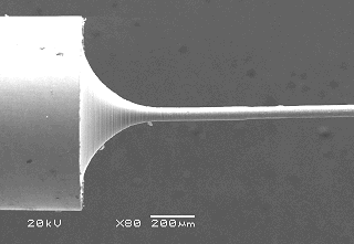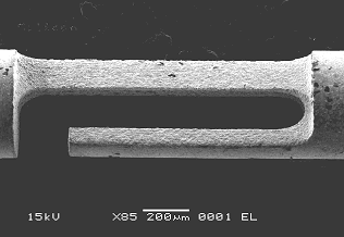 Under the leadership of Professor M Rahman, the Micro and Nano Machining Research Group at the Department of Mechanical Engineering, NUS, has developed a miniature machine tool for multiple types of micro machining in one set-up. The set-up, which is equipped with an in-situ measuring system, is capable of carrying out micro turning, micro milling, micro electro-discharge machining (EDM), micro wire-cut EDM and their combination. The developed on-machine measuring device ensures high dimensional accuracy of the machined micro-structures. The figures below show a high aspect ratio shaft (80 µm in diameter and 15000 µm in length) and a micro structure produced by the set-up. Micro shafts of 15 μm in diameter, micro lenses on BK7 glass, micro holes (30 μm in diameter) in silicon, and other complex micro components have been successfully manufactured using this machine. Patents are currently being filed for the miniature multiple micro machining system as well as the in-situ measuring unit.