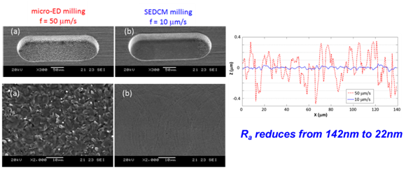 Micro holes of 6.5 µm with aspect ratio of 8; surface finish of 2nm have been achieved using such processes (Fig. 4).