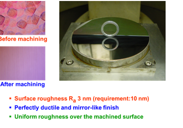 Fig. 8:Typical example of transition of machining modes from brittle to ductile depending on cutting conditions on Silicon. (Machine used: DT-110)